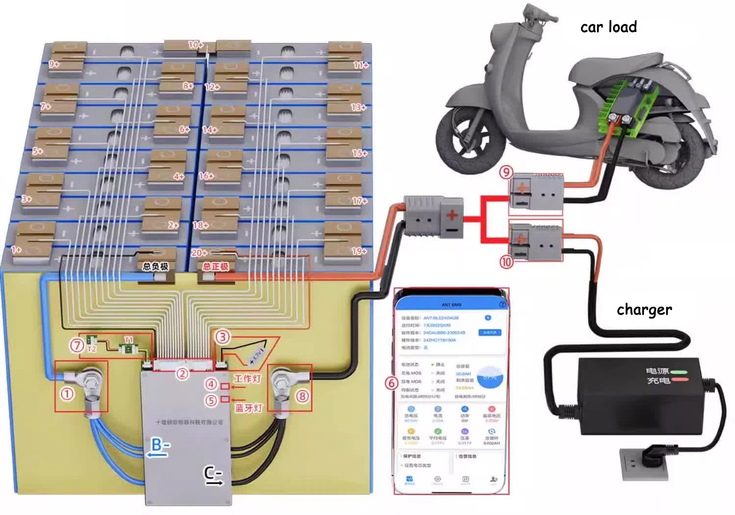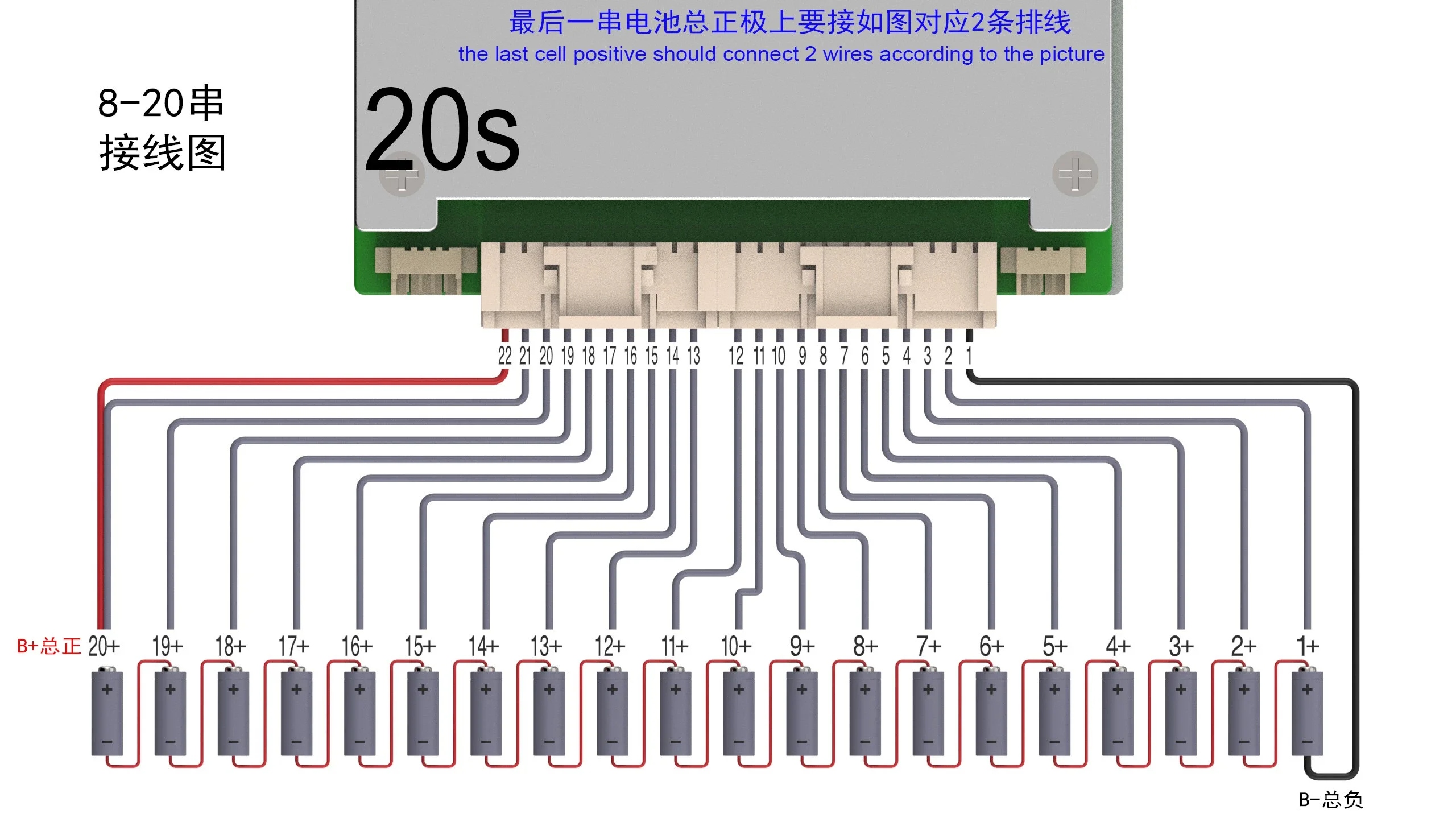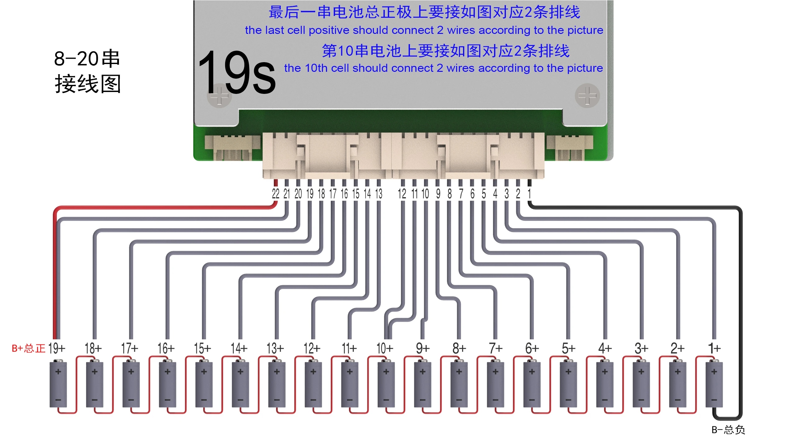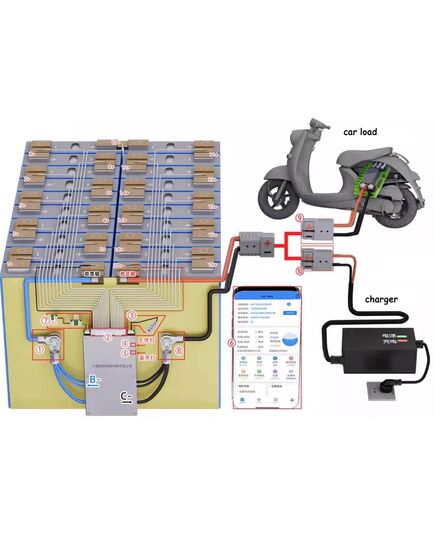 Το BMS περιλαμβάνει: πλακέτα προστασίας BMS + καλώδια και συνδέσεις για μπαταρίες + αισθητήρες θερμοκρασίας + καλώδια τροφοδοσίας.