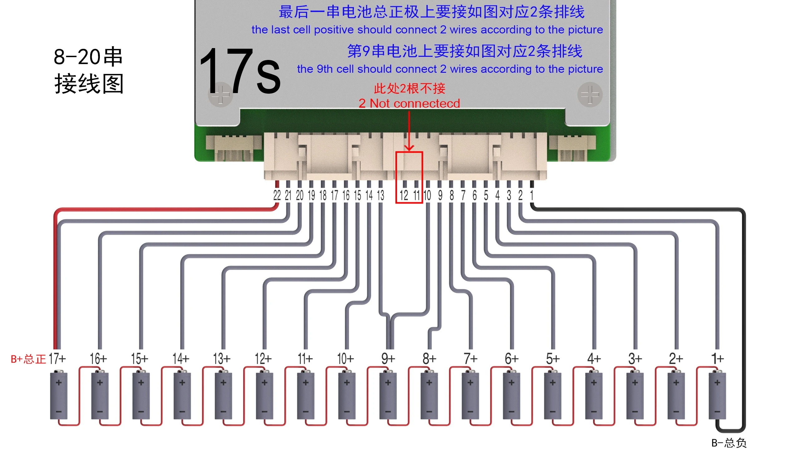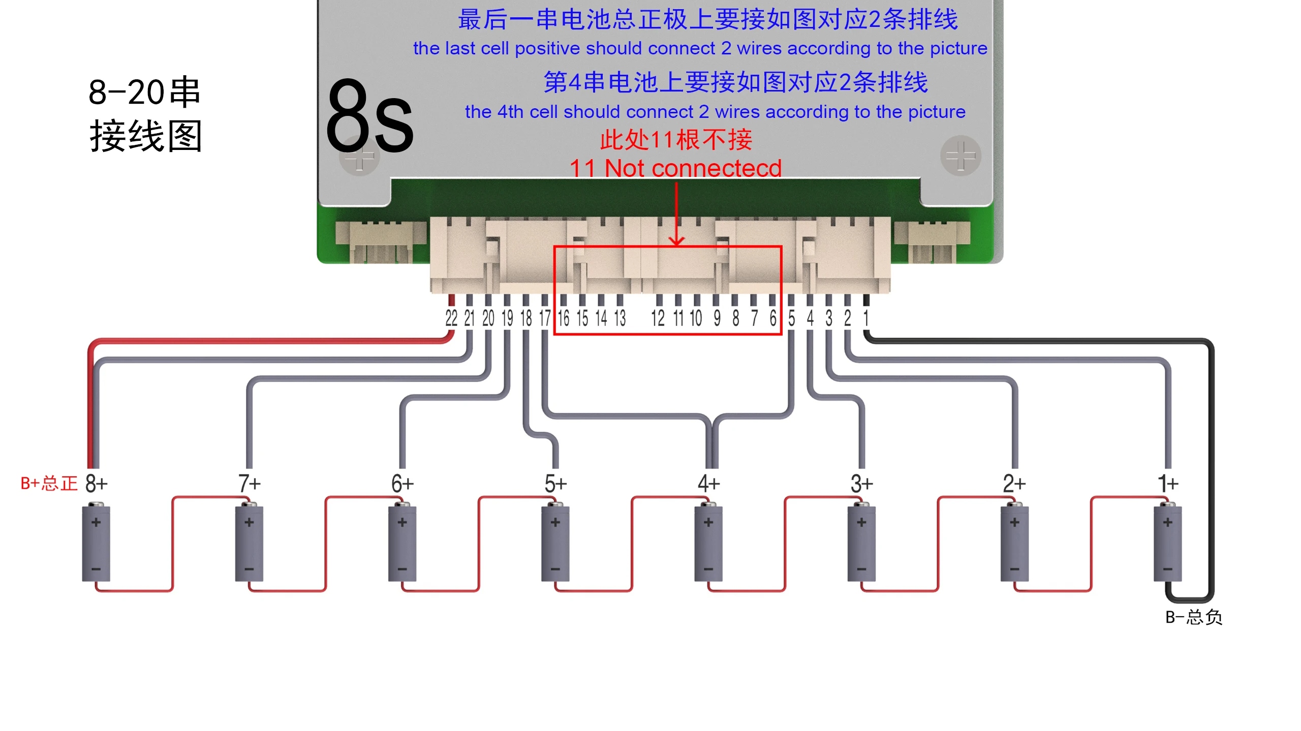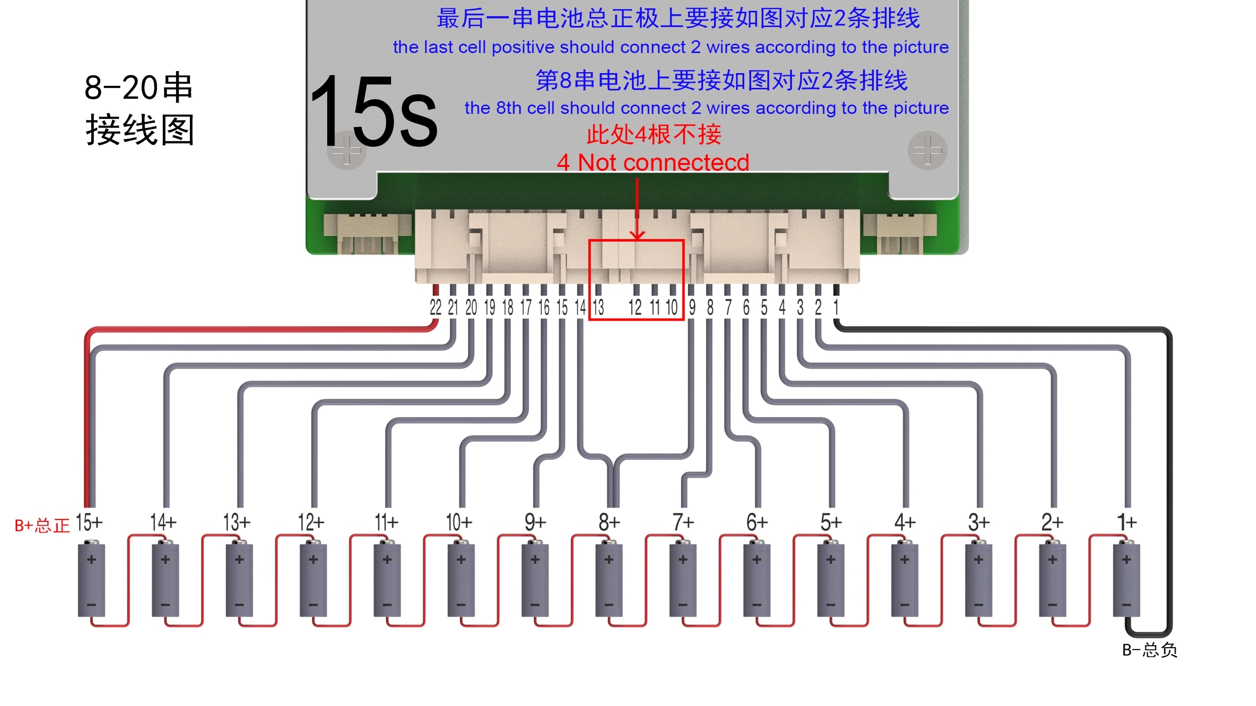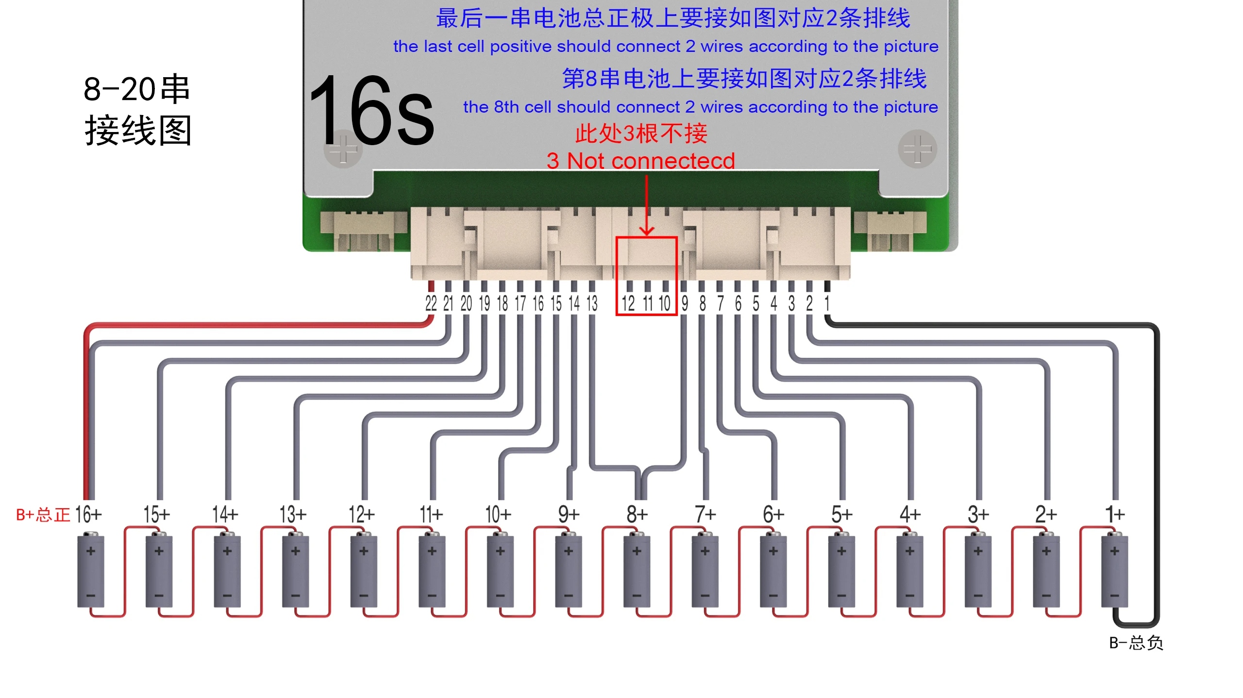Το BMS περιλαμβάνει: πλακέτα προστασίας BMS + καλώδια και συνδέσεις για μπαταρίες + αισθητήρες θερμοκρασίας + καλώδια τροφοδοσίας.