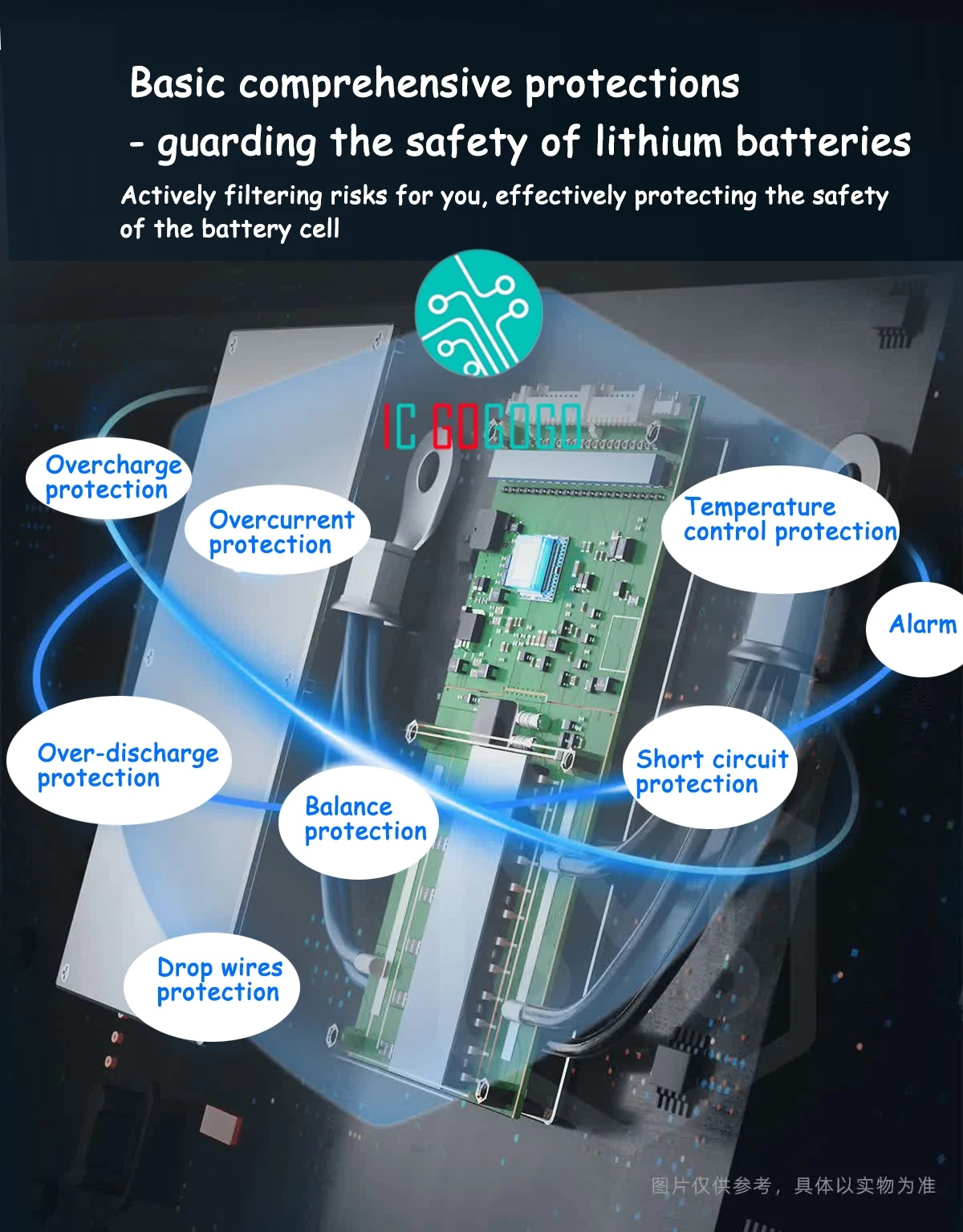 - προστασία από υπερφόρτιση ρεύματος· προστασία από υπερεκφόρτιση ρεύματος· προστασία από υπερφόρτιση τάσης· προστασία από υπερεκφόρτιση τάσης· προστασία από θερμοκρασία και ούτω καθεξής.