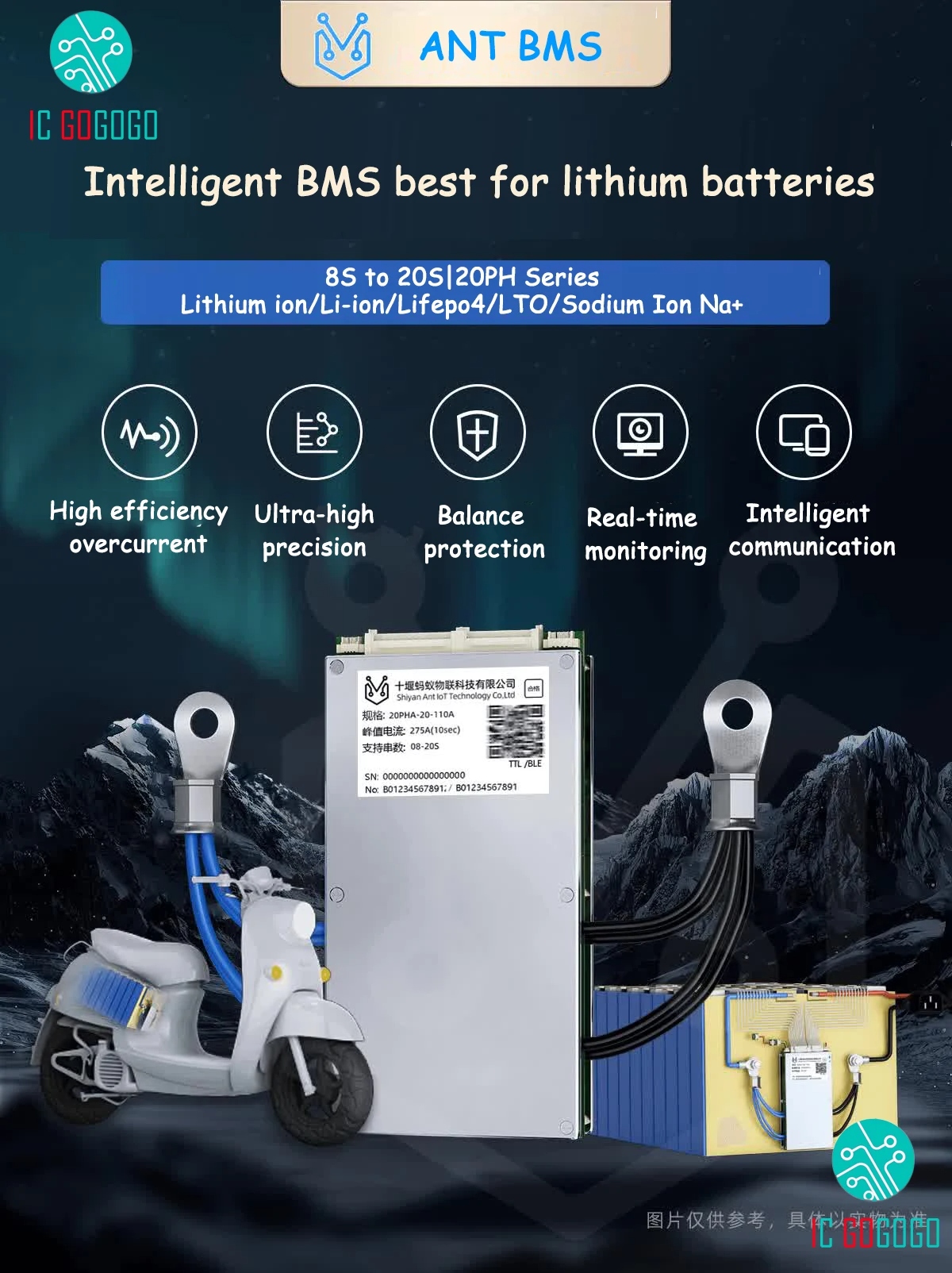 TO ANT BMS 8-20S 130A διαθέτει όλα τα πρότυπα ασφαλείας και είναι κατάλληλο για μπαταρίες λιθίου με διαφορετικές χημικές ιδιότητες, όπως ιόντα λιθίου, πολυμερές λιθίου, φωσφορικό σίδηρο λιθίου, κ.λπ.
