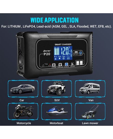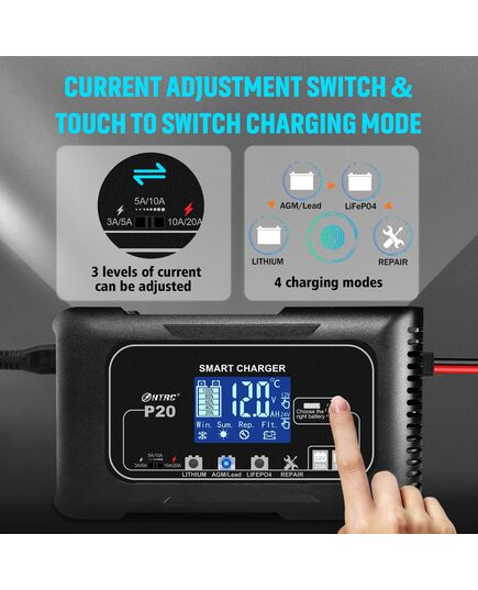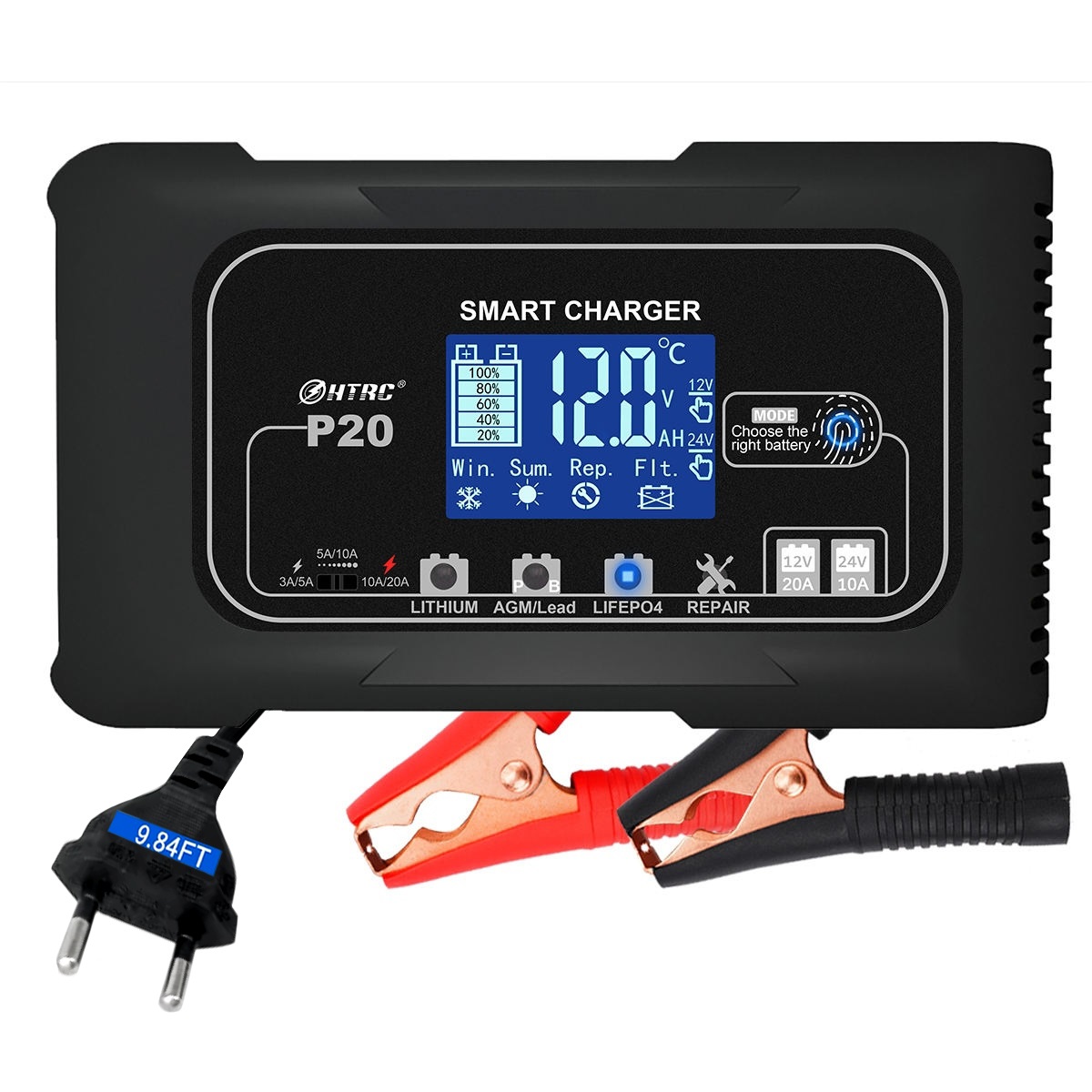 HTRC P20 Φορτιστής μπαταριών Lithium LiFePO4 AGM GEL Lead-Acid με έξοδο 12V/20A 24V/10A και με επιπλέων λειτουργία επισκευής μπαταριών