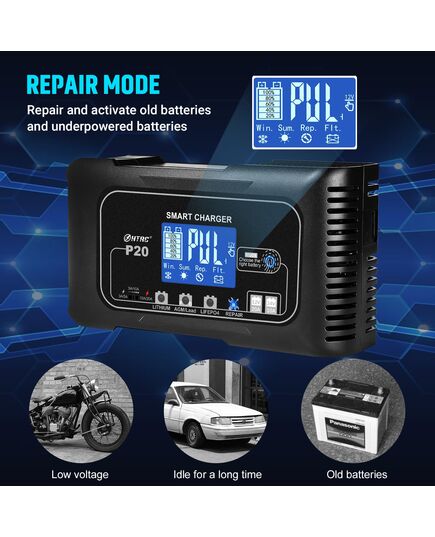 Ο φορτιστής HTRC διαθέτει επιπλέων λειτουργία επισκευής μπαταριών για την επίλυση προβλημάτων γήρανσης, ανιχνεύοντας τη θείωση της μπαταρίας και τη στρωματοποίηση οξέων και βελτιώνει τη χαμένη απόδοση της μπαταρίας χρησιμοποιώντας παλμική τάση και ρεύμα με συγκεκριμένη συχνότητα.