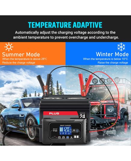 Πολλαπλή προστασία φόρτισης με έξυπνο έλεγχο με αντιστάθμιση θερμοκρασίας σε ζεστά κλίματα και υποφόρτιση σε ψυχρά κλίματα.