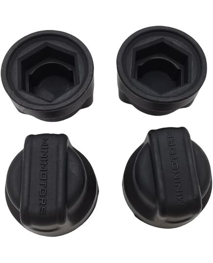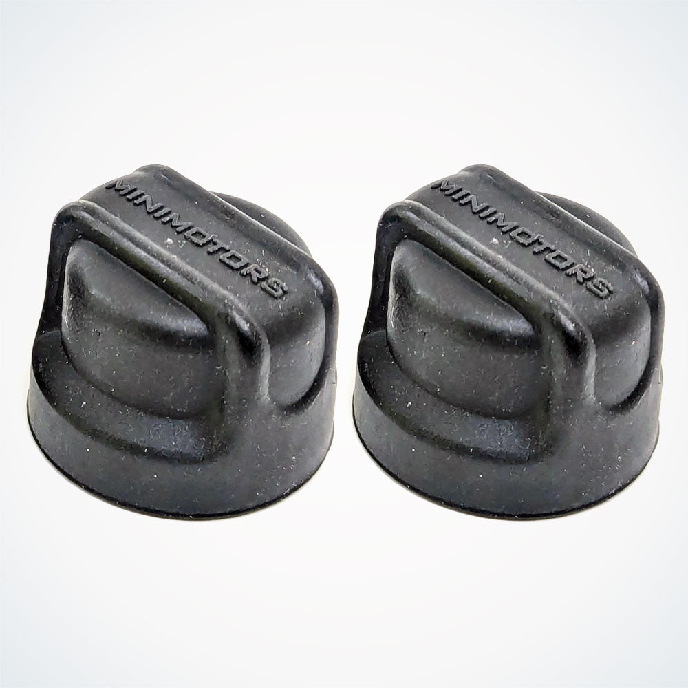 Καπακιά παξιμαδιών τροχού M12 από μαύρο καουτσούκ, συμβατά με όλα τα μοντέλα Dualtron που χρησιμοποιούν παξιμάδια M12. Κατασκευασμένα από ανθεκτικό καουτσούκ με το λογότυπο Minimotors, προστατεύουν από τη σκόνη, τη σκουριά και τις κρούσεις. Η έκδοση χωρίς οπές ταιριάζει σε άξονες κινητήρα με καλώδια περασμένα μέσα στον βραχίονα ανάρτησης. Περιλαμβάνει 2 καπάκια παξιμαδιών ανά σετ.
