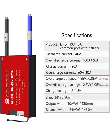 Εφαρμογή: Κατάλληλο για εφαρμογή μπαταρίας ιόντων λιθίου 10S 36V 40A