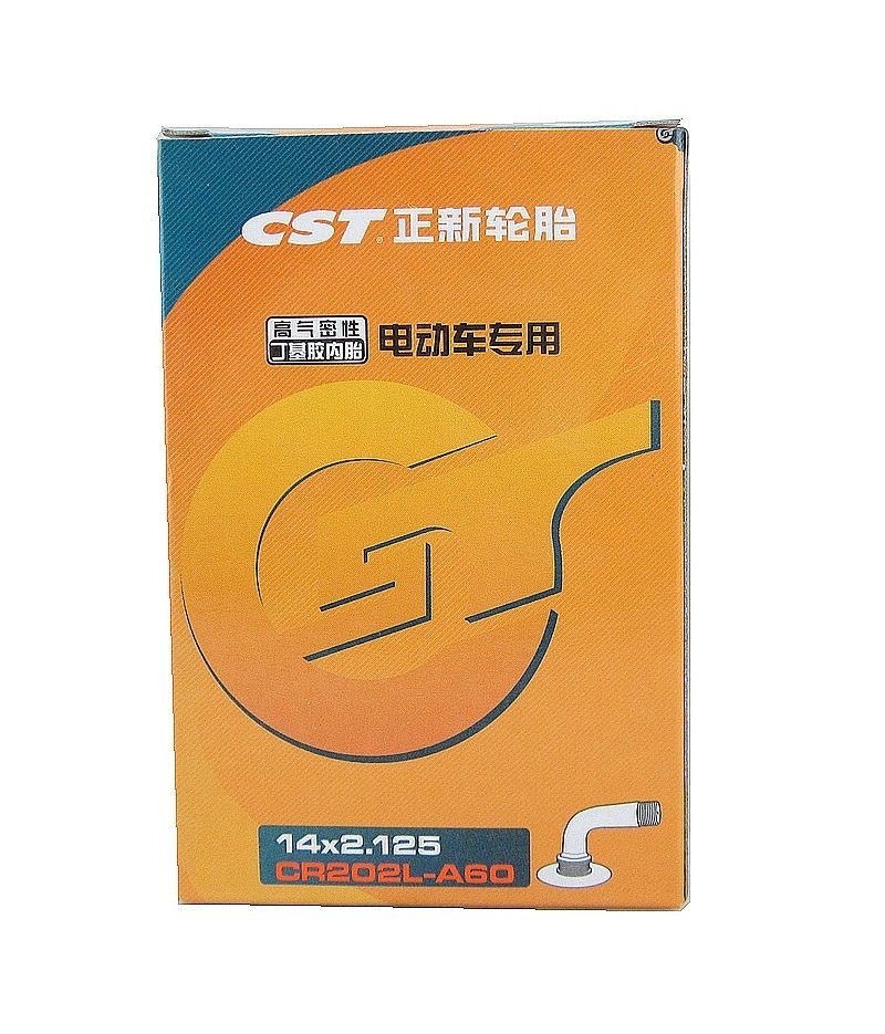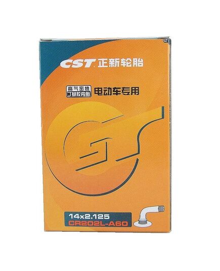 Εσωτερικός σωλήνας ελαστικού CST διαστάσεων 140mm x 250mm (14× 2.125) με βαλβίδα Schrader. Συμβατό με ηλεκτρικά ποδήλατα, ηλεκτρικά σκούτερ και ηλεκτρικά αναπηρικά αμαξίδια. Κατασκευασμένο από ανθεκτικό βουτυλικό καουτσούκ για αξιόπιστη συγκράτηση αέρα και αντοχή σε τρυπήματα.