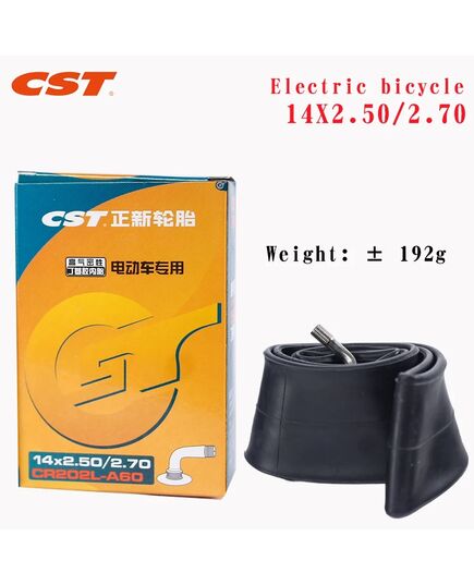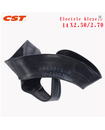 Εσωτερικός σωλήνας ελαστικού CST διαστάσεων 140mm x 250mm (14×2,5) με βαλβίδα Schrader. Συμβατό με ηλεκτρικά ποδήλατα, ηλεκτρικά σκούτερ και ηλεκτρικά αναπηρικά αμαξίδια. Κατασκευασμένο από ανθεκτικό βουτυλικό καουτσούκ για αξιόπιστη συγκράτηση αέρα και αντοχή σε τρυπήματα.