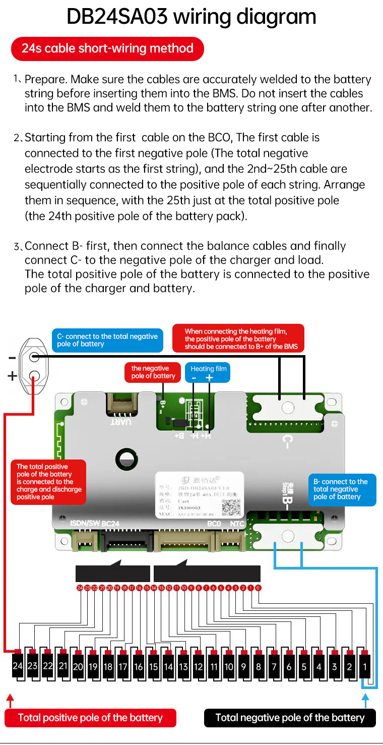 Smart BMS JBD 7S-24S 50A-100A UART DB24SA03