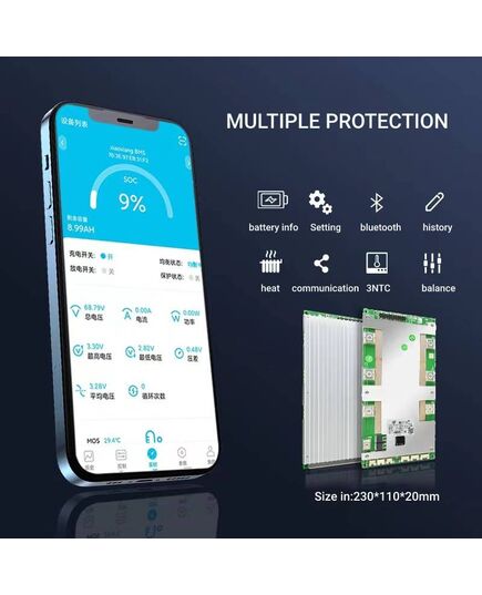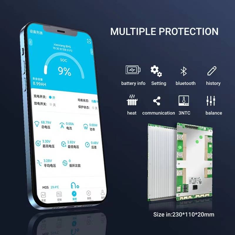 Το Smart BMS 7S-24S 50A-100A UART DB24SA03 διαθέτει μια από τις πιο σύγχρονες εφαρμογές (xiaoxiang) και υποστηρίζει IOS και Android. Το Smart BMS DB24SA03 είναι τελευταίας τεχνολογίας με οχτώ σημεία προστασίας και εφαρμογή στο κινητό για να έχετε τον πλήρη έλεγχο της μπαταρίας. Από την εφαρμογή έχετε άμεση πληροφόρηση για το κάθε κελί ξεχωριστά και πολλές επιλογές ρυθμίσεων για την βέλτιστη λειτουργία της.