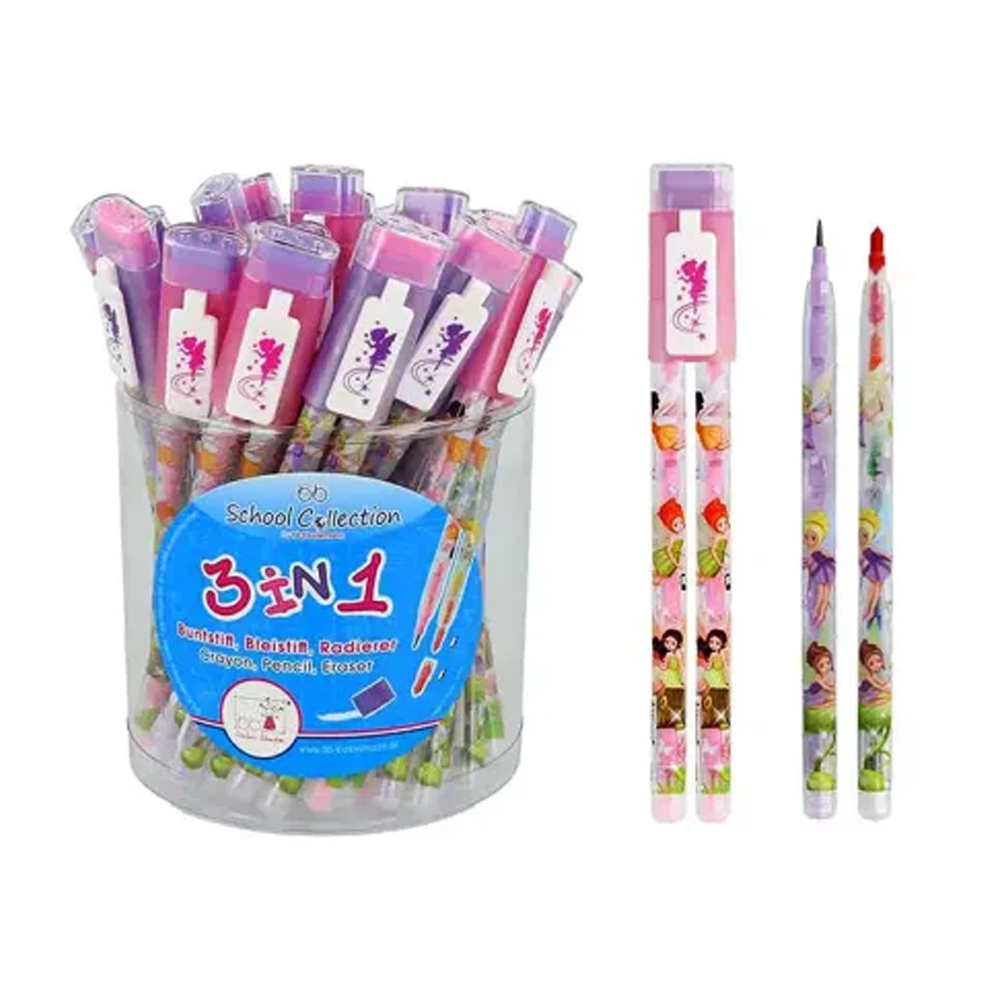 Έξυπνο Μολύβι 3-σε-1 Κηρομπογιά, Μολύβι και Γόμα με Νεράιδες