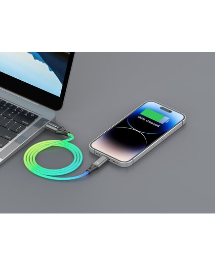 Το καλώδιο διαθέτει μοντέρνο σχεδιασμό και κομψή εμφάνιση. Ο πολύχρωμος RGB φωτισμός ενεργοποιείται κατά τη φόρτιση, δημιουργώντας ένα εφέ επτάχρωμης φωτεινής μετάβασης που προσφέρει ευχάριστη οπτική εμπειρία και κάνει τη διαδικασία φόρτισης πιο ζωντανή και λιγότερο μονότονη.