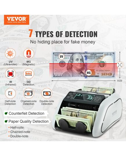 Ψηφιακός μετρητής χαρτονομισμάτων VEVOR ALK07 με ανιχνευτή πλαστών UV MG