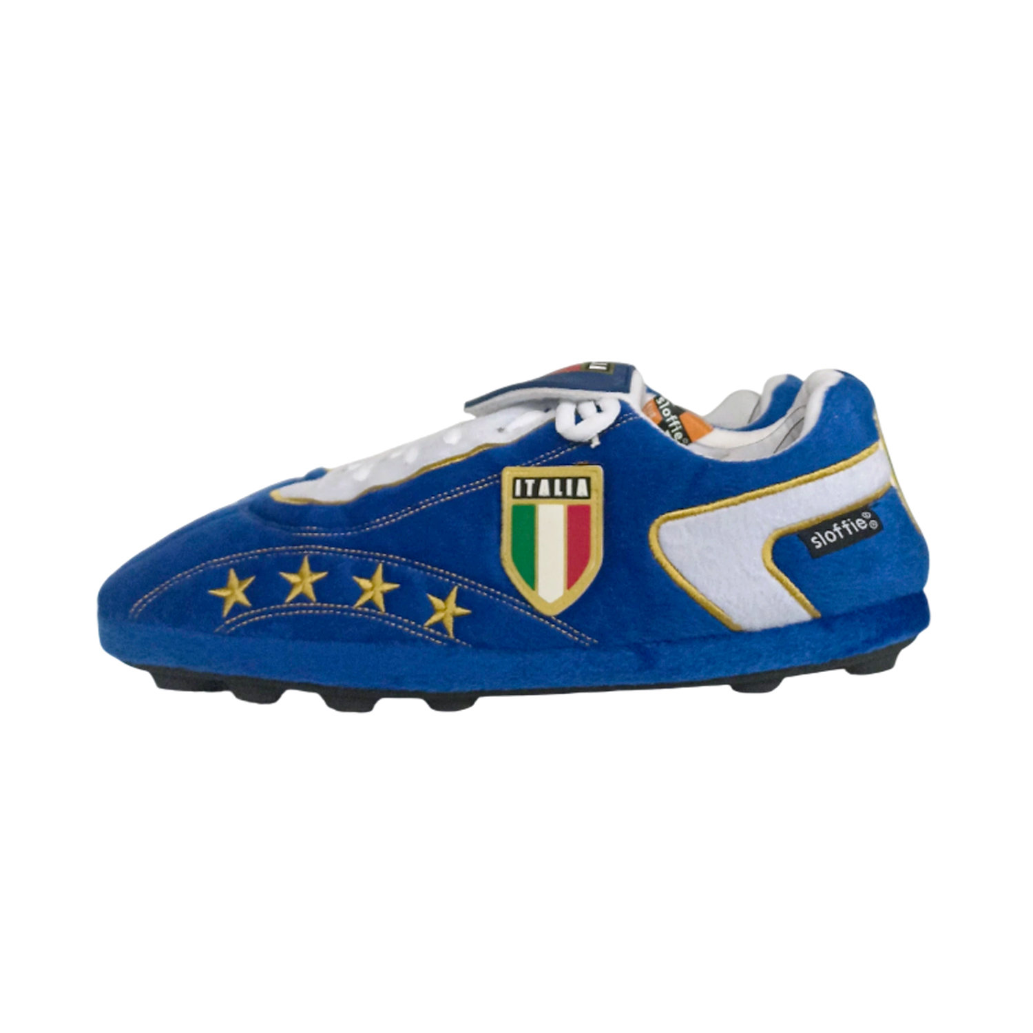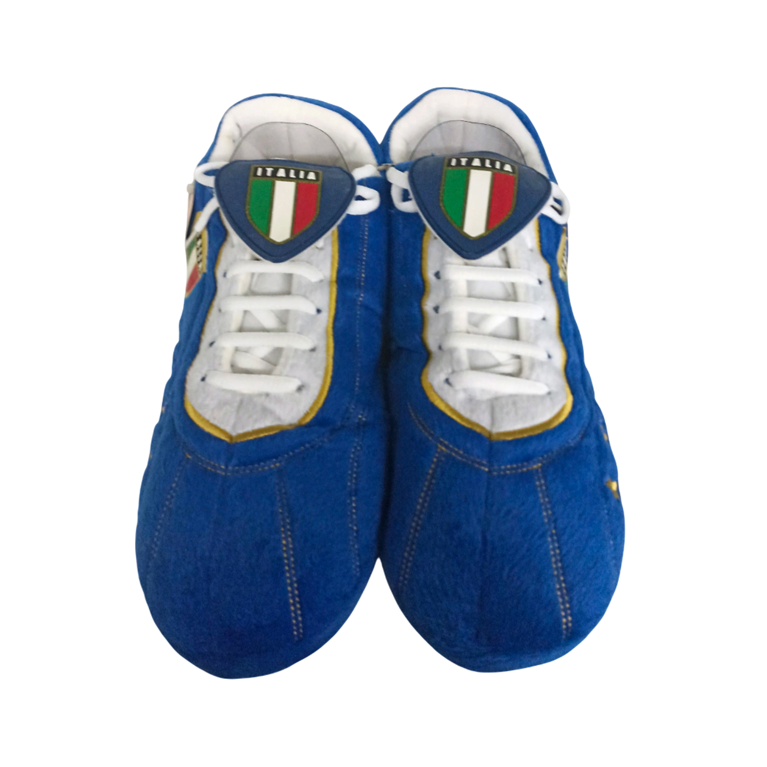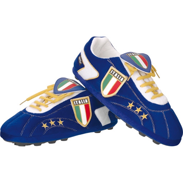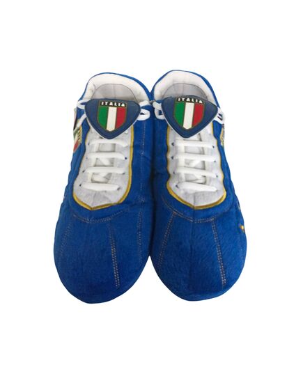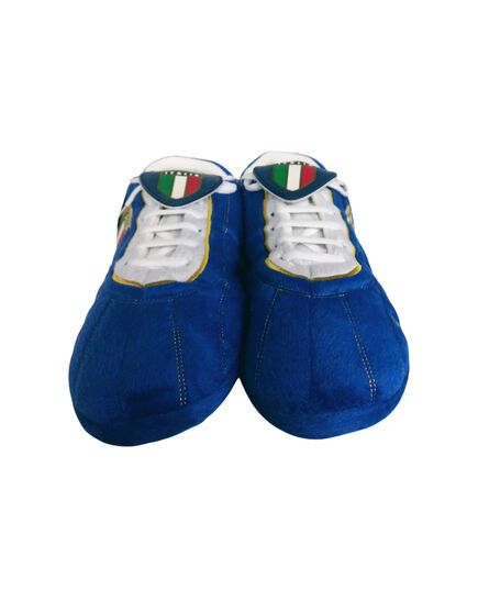Απίστευτα αναπαυτικές παντόφλες σε σχήμα ποδοσφαιρικού παπουτσιού (Ιταλία Μπλέ). Χάρη στα κορδόνια, στη "γλώσσα" και στις τάπες, μοιάζουν με αληθινό ποδοσφαιρικό παπούτσι.