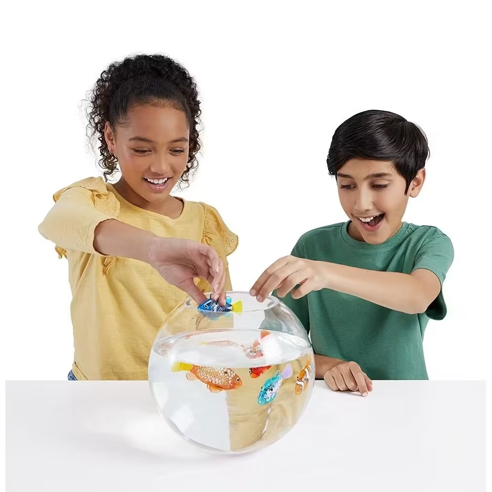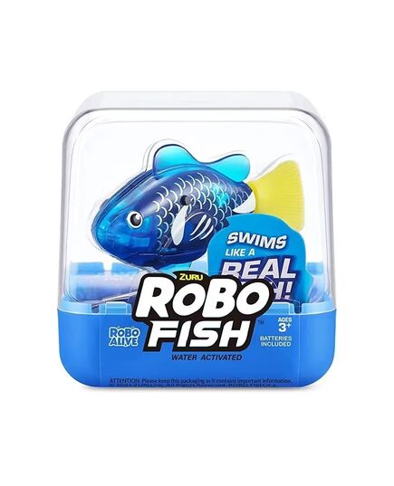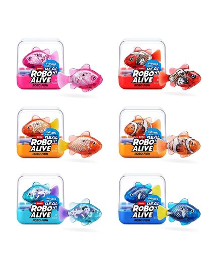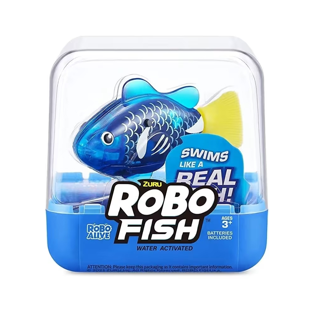 Τα νέα ZURU Robo Fish της Robo Alive με μια βουτιά είναι τα πιο εμβληματικά ρομποτικά κατοικίδια που κολυμπούν στην πραγματικότητα. Ρίξτε τα στο νερό και παρακολουθήστε τα να κολυμπούν προς 5 διαφορετικές κατευθύνσεις και να βουτούν μέχρι τα 6 πόδια καθώς η τεχνολογία ενεργοποίησης του νερού της ZURU ζωντανεύει αυτά τα ψάρια με τρόπο ποι μοιάζει μαγικό! Αυτά τα ρεαλιστικά ψάρια αποτελούν το τέλειο παιχνίδι για κατοικίδιο ή φάρσα.