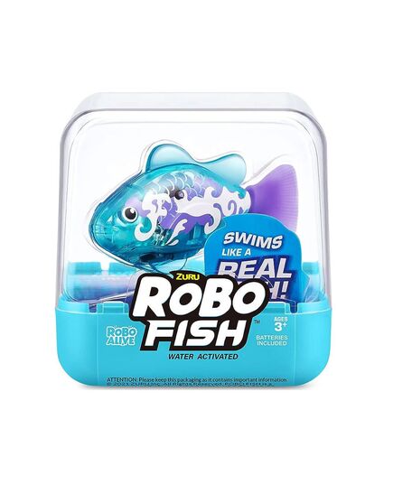 Τα νέα ZURU Robo Fish της Robo Alive με μια βουτιά είναι τα πιο εμβληματικά ρομποτικά κατοικίδια που κολυμπούν στην πραγματικότητα. Ρίξτε τα στο νερό και παρακολουθήστε τα να κολυμπούν προς 5 διαφορετικές κατευθύνσεις και να βουτούν μέχρι τα 6 πόδια καθώς η τεχνολογία ενεργοποίησης του νερού της ZURU ζωντανεύει αυτά τα ψάρια με τρόπο ποι μοιάζει μαγικό! Αυτά τα ρεαλιστικά ψάρια αποτελούν το τέλειο παιχνίδι για κατοικίδιο ή φάρσα.