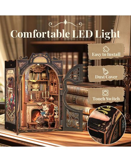 Όμορφος LED φωτισμός και διακόπτης αφής: Ο απαλός LED φωτισμός αναβαθμίζει την εμφάνιση και την ατμόσφαιρα του book nook που ανάβει και σβήνει στη στιγμή χάρης στον διακόπτη που βρίσκεται επάνω στο Nook Book.