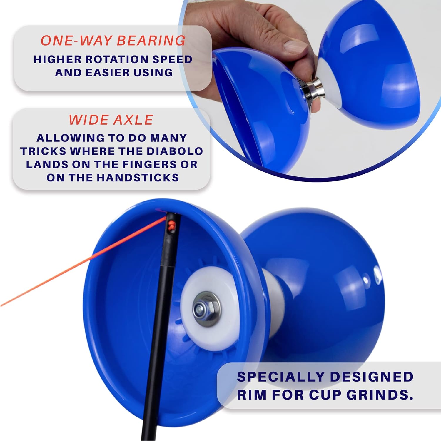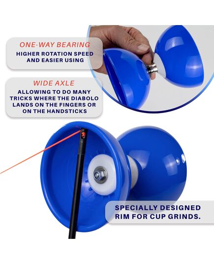 Το Big Top Bearing Diabolo είναι η τέλεια επιλογή εκκίνησης για όποιον αναζητά ένα καλό diabolo. Ο άξονας του Big Top είναι εφοδιασμένος με ρουλεμάν και θα περιστρέφεται πολύ περισσότερο από τα Diabolo σταθερού άξονα. Ο εξαιρετικά φαρδύς άξονας κάνει τα κόλπα όπως το finger grinds πολύ πιο εύκολα και τα κύπελλα μεγέθους Jumbo (129 mm) τον καθιστούν πολύ σταθερό σε όλες τις ταχύτητες. Κατασκευασμένο από σκληρό, ανθεκτικό στις γρατσουνιές TPE, το Big Top θα χειρίζεται πτώσεις ακόμα και από τις υψηλότερες ρίψεις.