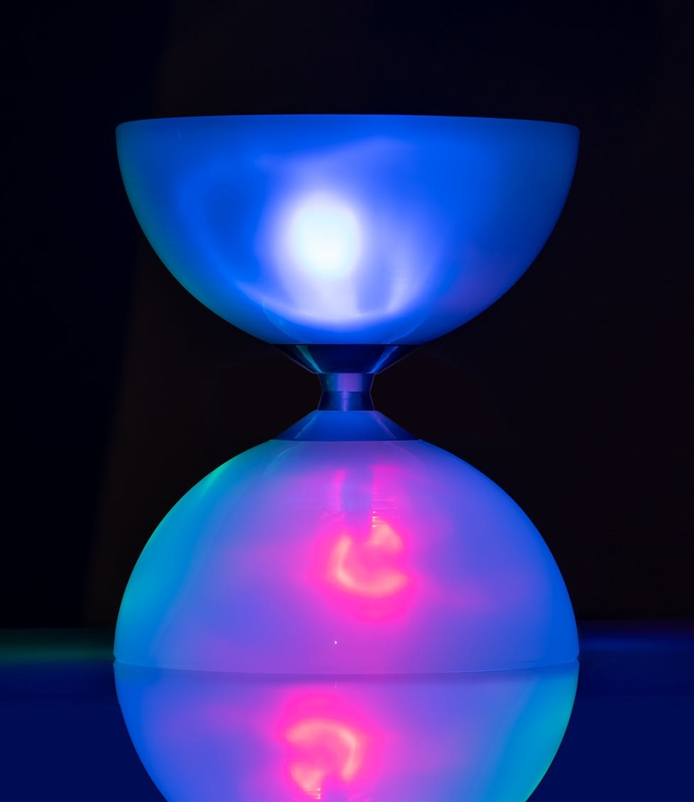 Οι μονάδες LED είναι προεγκατεστημένες και εκπέμπουν έντονα, πολύχρωμα φώτα, καθιστώντας το diabolo οπτικό επίκεντρο σε κάθε εκδήλωση. Κατασκευασμένο από ανθεκτικό, αντιχαρακτικό TPE, είναι φτιαγμένο για να αντέχει σε αμέτρητες παραστάσεις και έντονη εξάσκηση.