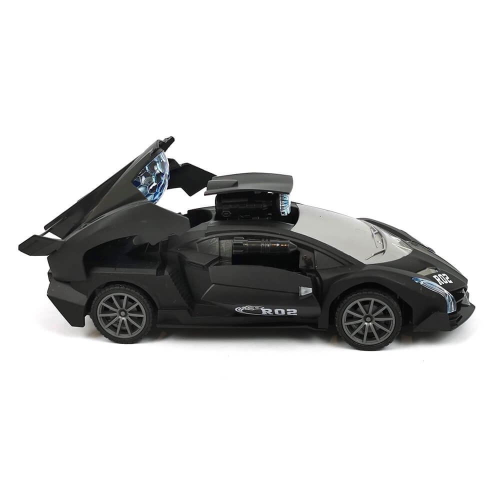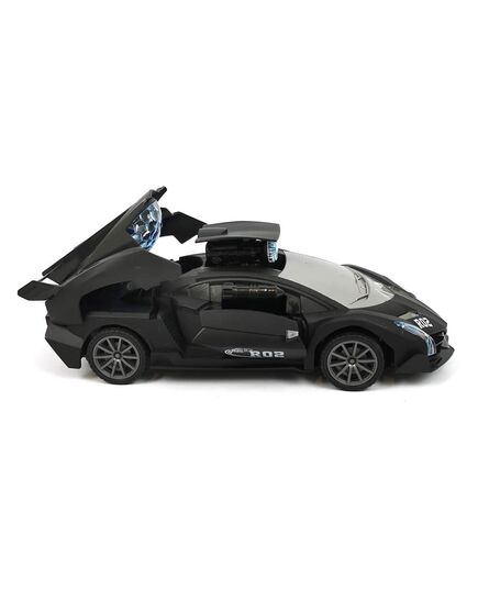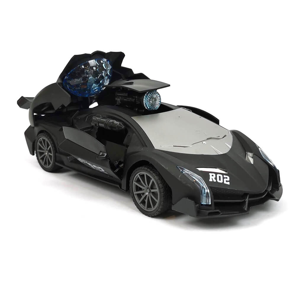 Αυτό το τηλεκατευθυνόμενο αυτοκίνητο κινείτε εμπρός, πίσω και αριστερά, δεξιά από την τηλεκατεύθυνσή και με το πάτημα ενός κουμπιού που βρίσκετε στο κοντρόλ μπορεί να μετατραπεί σε ρομπότ σε μόλις 2 δευτερόλεπτα.