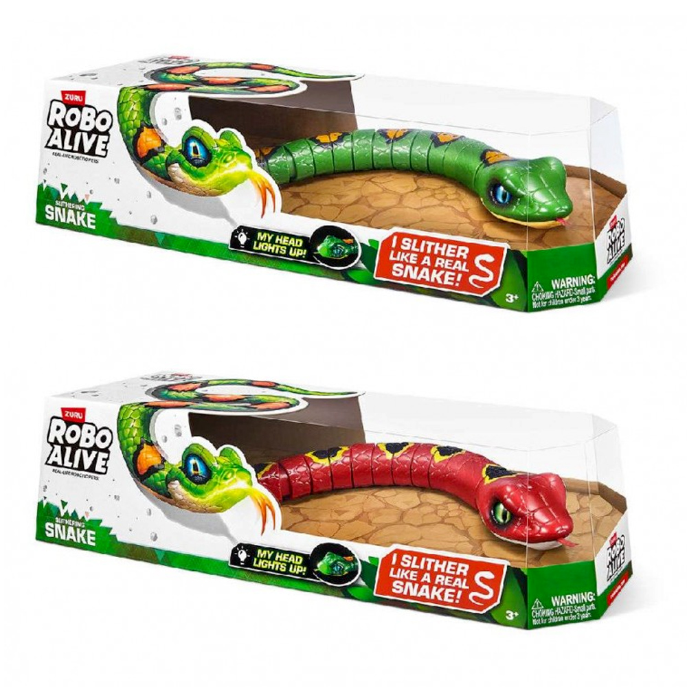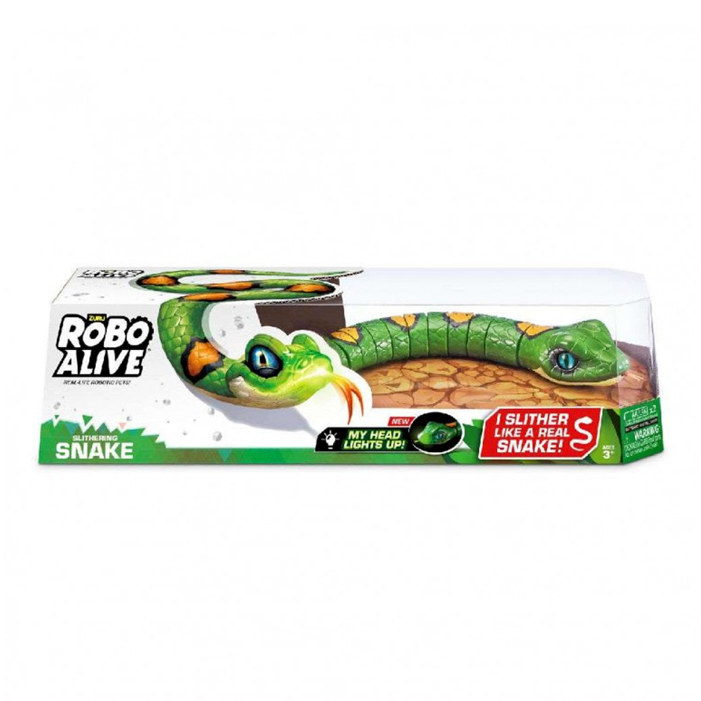Σσσσσ! Έρχεται το φίδι Zuru Robo Alive Slithering Snake! Ενεργοποίηστε αυτό το ανατριχιαστικό πλάσμα και δείτε το να έρπεται στο πάτωμα με απίστευτα ρεαλιστικό τρόπο και σούπερ ταχύτητα! Η προηγμένη ρομποτική τεχνολογία τού επιτρέπει να γλιστρά αθόρυβα και να τρεμοπαίζει τη γλώσσα του, σαν να κυνηγά το επόμενο γεύμα του. Το μόνο σίγουρο είναι ότι όλοι οι φίλοι σας θα βάλουν τις φωνές μόλις αρχίσει αυτό το φιδάκι να έρχεται κατα πάνω τους! Και το καλύτερο; Το κεφάλι του φιδιού έχει λαμπάκι που φωτίζει στο σκοτάδι!
